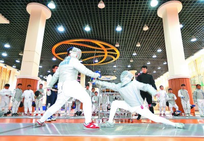 擊劍進(jìn)青島通濟(jì)實(shí)驗(yàn)學(xué)校校園