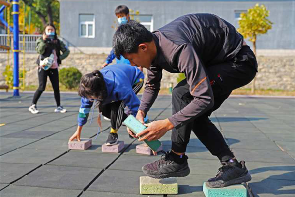 以“挑戰(zhàn)自我,熔煉團隊”為主要理念的拓展運動,在“樂動會”、“以問題為本”、“冒險體驗”、“全適能”等教育理念支撐下,按照“體能消耗適中、心理挑戰(zhàn)較大、團隊熔煉為主”的思路,設(shè)計成體育課的一個專項,通過一系列全新的“項目游戲”設(shè)計,讓學(xué)生“玩起來、樂起來、動起來”。并通過“小游戲,大道理”進行引導(dǎo)反思,幫助學(xué)生掌握身體健康、心理健康和社會適應(yīng)等方面的知識和技能,成為體育與教育完美結(jié)合的新模式。