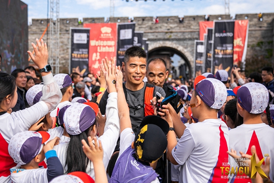 10月25日,珊瑚越野·少兒賽體彩柴古公益站,孩子們出發(fā)前,與完賽歸來的115公里選手互動。[詳細(xì)] -
