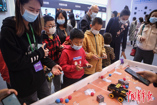 11月1日,山西太原,中國(太原)人工智能大會主題展覽現(xiàn)場,一家主打人工智能和機(jī)器人的高科技創(chuàng)新公司研發(fā)的機(jī)器人競技類游戲吸引了許多小朋友駐足體驗(yàn)。10月31日,中國(太原)人工智能大會舉辦,大會主題展覽同步舉行,40余個展位集中展示當(dāng)前人工智能產(chǎn)業(yè)核心技術(shù)、產(chǎn)品和創(chuàng)新成果。