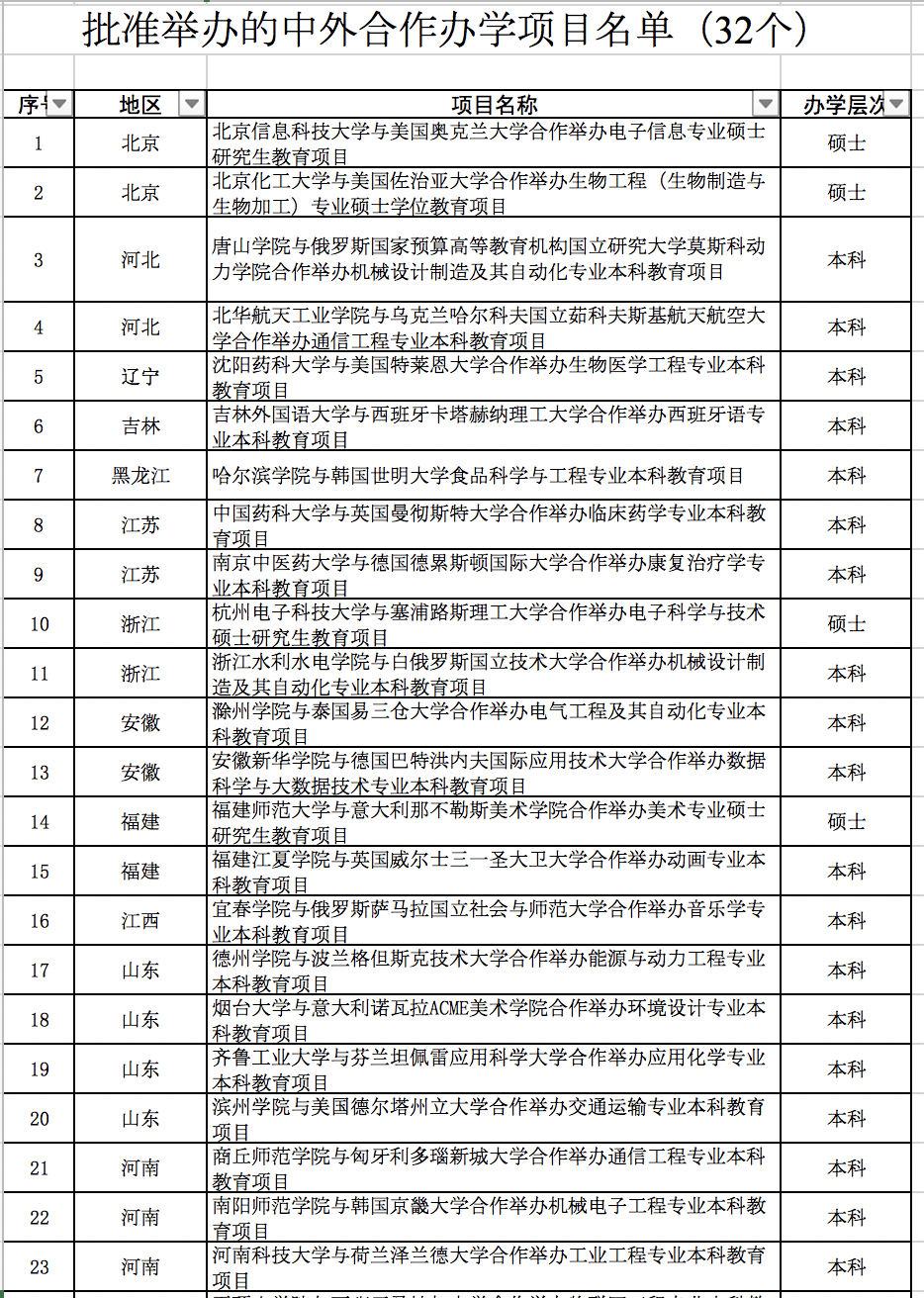 32個中外合作辦學(xué)項目獲教育部批準(zhǔn) 2021年起可招生