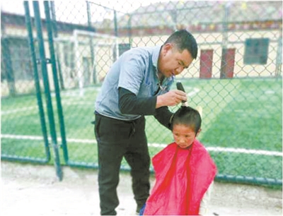 才旦多吉每?jī)芍芙o學(xué)生洗一次澡,每個(gè)月給他們理一次發(fā)。他自己買了理發(fā)工具,研究怎樣剪出孩子們喜歡的發(fā)型,一開始理出的頭發(fā)總是不整齊,想給學(xué)生做個(gè)洋氣的發(fā)型,也總是做得奇形怪狀。后來(lái)理發(fā)的次數(shù)多了,水平就提升了。才旦多吉笑稱自己是“鄉(xiāng)村版的托尼老師”。
