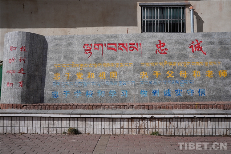 中國(guó)西藏網(wǎng)訊 在廣袤的羌塘草原的深處,西藏自治區(qū)那曲市比如縣第二小學(xué)就座落在怒江河畔。高樓林立校園里,校訓(xùn)之頁(yè)的石碑格外引人注目,石碑用藏漢兩種文字刻著:忠誠(chéng),忠于黨和祖國(guó),忠于父母和老師,忠于學(xué)校和學(xué)習(xí),做到誠(chéng)實(shí)守信。第二小學(xué)校長(zhǎng)桑珠多吉介紹,校園文化是學(xué)校的靈魂,學(xué)校文化具有一定內(nèi)涵和文化氛圍的特色,校園教學(xué)一定要與文化素質(zhì)教育相結(jié)合,助推加強(qiáng)教育與文化精神,是學(xué)校師生或者教育工作者必備的素養(yǎng)。