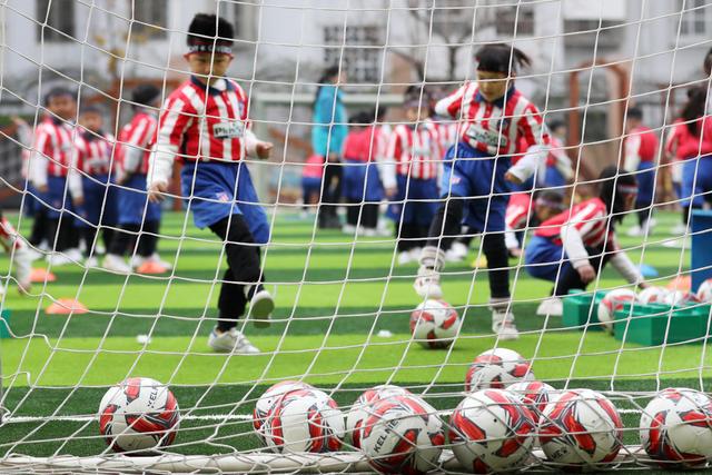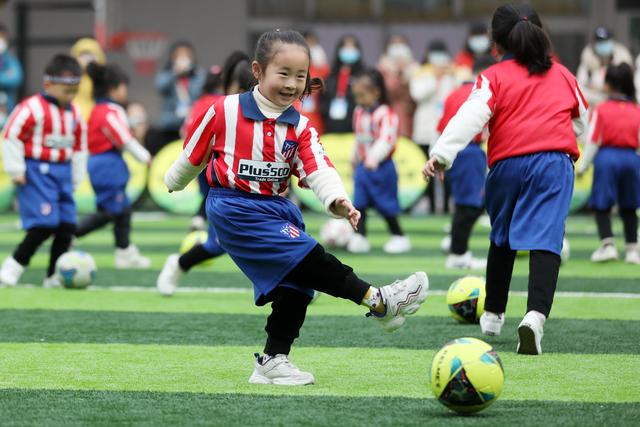 12月7日,淮北市第二實驗幼兒園的小朋友在足球課上學習踢足球。安徽省淮北市第二實驗幼兒園是一所“全國足球特色幼兒園”。該園把足球列入幼兒園體育課教學內(nèi)容,通過開設(shè)幼兒足球趣味練習、足球游戲等特色課程,向孩子們傳授足球基本知識和技巧,從小培養(yǎng)孩子們對足球的興趣,讓他們感受足球運動的魅力,健康快樂成長。新華社發(fā)(萬善朝 攝)