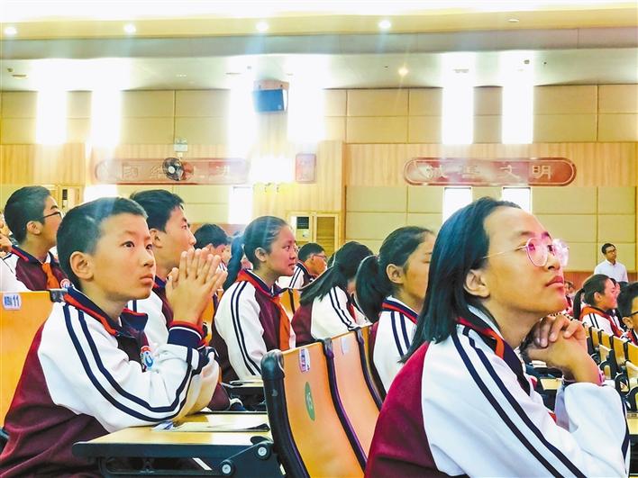 珠海四中內(nèi)地西藏班師生認(rèn)真聽取報(bào)告。