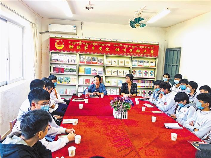 宣講會(huì)結(jié)束后,共青團(tuán)西藏自治區(qū)委員會(huì)副書記格桑卓瑪、西藏青年報(bào)社副社長(zhǎng)洛桑頓珠、內(nèi)地西藏班(校)管理中心工作人員廖羨等與內(nèi)地西藏班各族師生代表進(jìn)行了座談,詳細(xì)了解了他們的學(xué)習(xí)和生活情況,傾聽了參會(huì)者的活動(dòng)感想、感受,并就如何進(jìn)一步豐富活動(dòng)內(nèi)容征求了意見、建議。