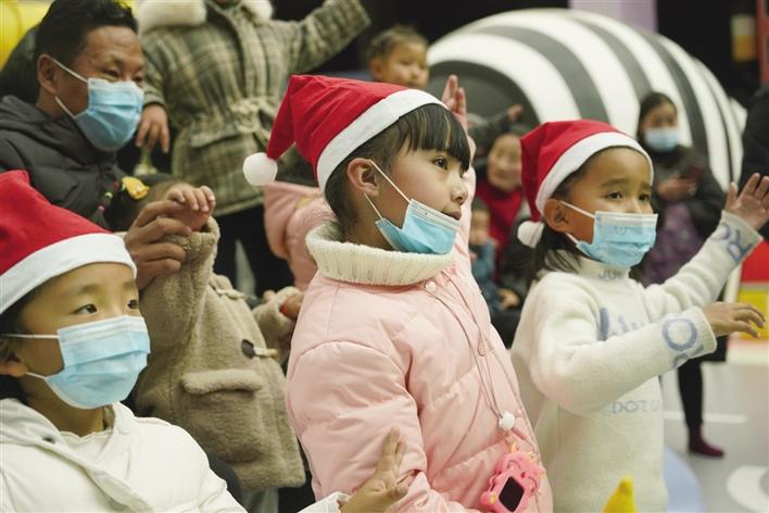 旋轉(zhuǎn)木馬、淘氣堡、滑梯……7歲的丹增達(dá)色玩得小臉紅撲撲,她告訴記者,這是她第一次來第三極歡樂世界,能和這么多小伙伴一起玩耍,真得很開心。“今天有這么多叔叔阿姨們陪我們一起唱歌、跳舞,還送了我們小禮物,我很喜歡?!钡ぴ鲞_(dá)色笑著說。