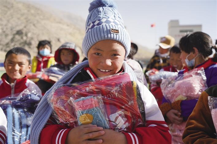 2020年12月31日,阿里巴巴天天正能量聯(lián)合西藏商報(bào)開(kāi)展的2020“針心針意”大型暖冬公益行動(dòng),在愛(ài)心人士們的大力支持下,圓滿畫(huà)上了句號(hào)。工作人員趕在新年前,將愛(ài)心物資分別送往山南市浪卡子縣倫布雪鄉(xiāng)蘇格村蘇格小學(xué)、山南市貢嘎縣森布日搬遷地、拉薩市當(dāng)雄縣5個(gè)村幼兒園,為孩子們送上愛(ài)心物資。孩子們戴上愛(ài)心人士們親手編織的圍巾、帽子和手套,綻放出燦爛的笑容,溫暖了這個(gè)冬天。