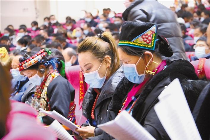 圖為會(huì)議代表聽(tīng)取和審議日喀則市政府工作報(bào)告的情景。張斌 楊梨榮 攝