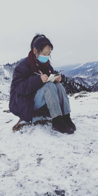 2020年3月,西藏昌都市波格村,就讀于江蘇食品藥品職業(yè)技術(shù)學(xué)院的藏族女孩斯郎巴珍,疫情期間在家上網(wǎng)課。由于家中網(wǎng)絡(luò)信號不好,她爬上雪山頂一處信號較好的位置聽課。劉麗/攝