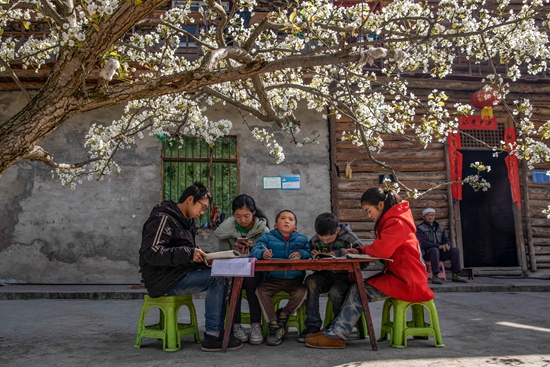 2020年4月26日,重慶市城口縣高楠鄉(xiāng)方斗村村民吳明安的院壩里,5名學(xué)生在全縣中小學(xué)復(fù)學(xué)前一天抓緊時間完成家庭作業(yè)。隨著疫情防控常態(tài)化,全國多個省市陸續(xù)復(fù)學(xué)。周健/攝