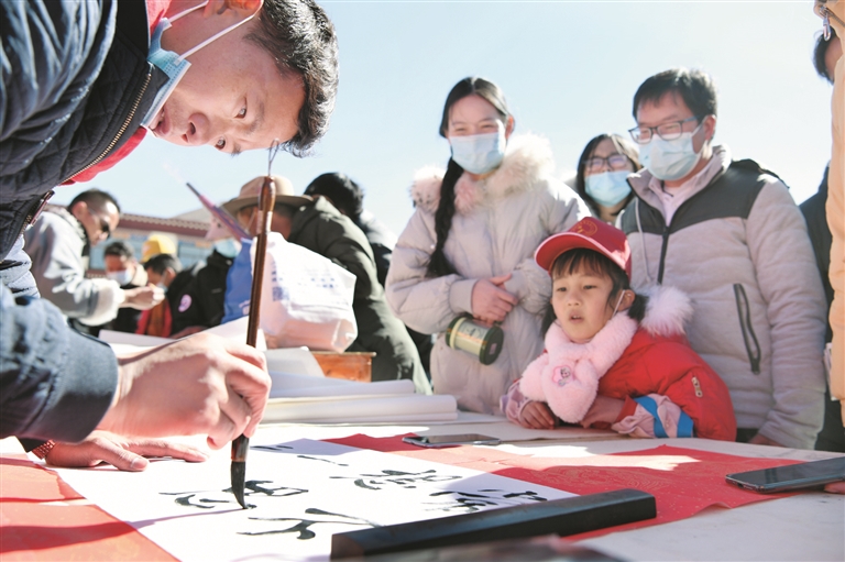 活動(dòng)中,書法家為群眾送上新年的祝福。