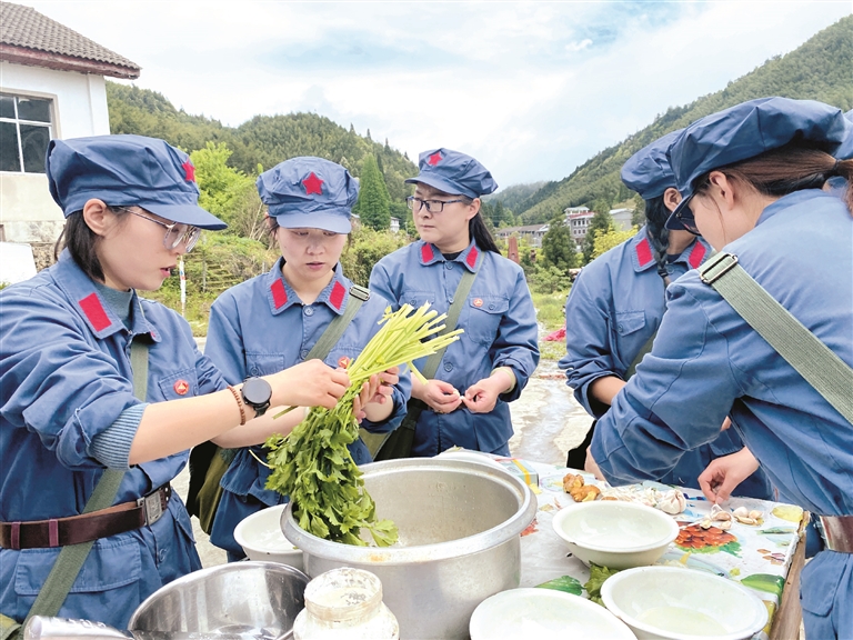 自制紅軍餐是拉薩市參訓(xùn)學(xué)員進(jìn)行革命傳統(tǒng)教育的內(nèi)容之一。紅軍餐中的每一道菜都有特殊的意義,學(xué)員們利用準(zhǔn)備好的食材、廚具、柴火等,完成了生火、洗菜、切菜、炒菜等紅軍餐制作全流程。一道道簡樸卻不失美味的紅軍菜肴,讓大家深深感受到了井岡山革命時(shí)期生活條件的艱苦。