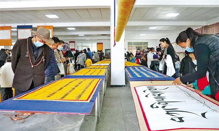 圖為書法展現(xiàn)場。格桑倫珠 攝