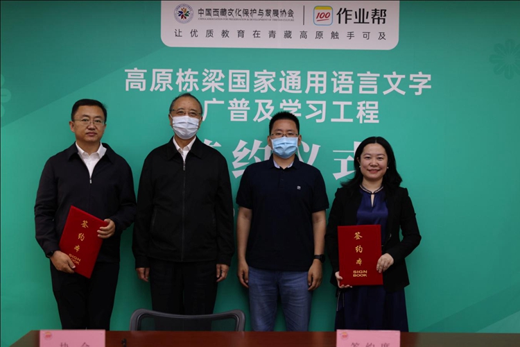 中國(guó)西藏網(wǎng)訊 4月27日,中國(guó)西藏文化保護(hù)與發(fā)展協(xié)會(huì)、作業(yè)幫教育科技(北京)有限公司在北京簽署合作協(xié)議,啟動(dòng)“高原棟梁”學(xué)習(xí)工程,助力青藏高原推廣普及國(guó)家通用語(yǔ)言文字。