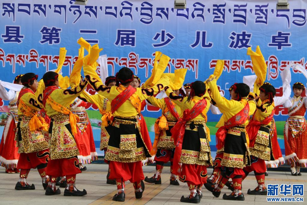 參加西藏波密縣第二屆“少兒波卓波央比賽”的孩子們在表演(2016年10月25日攝)。新華社發(fā) 普文平 攝