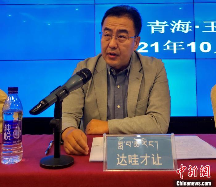 圖為中國(guó)民族語(yǔ)文翻譯局副局長(zhǎng)達(dá)哇才讓講話?!∮駱?shù)州語(yǔ)文工作中心供圖