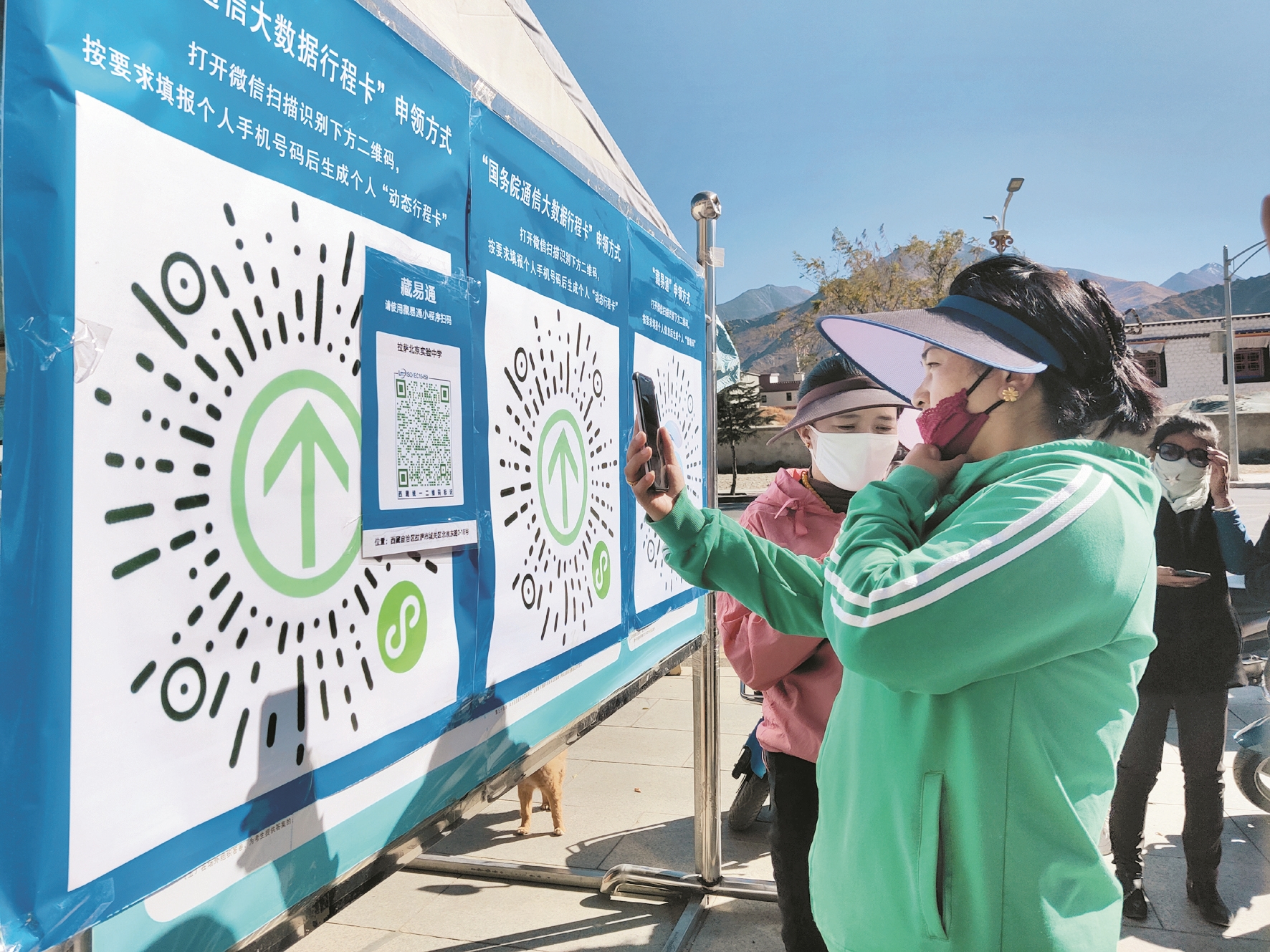 圖為進(jìn)入校園的人員正在掃描“場(chǎng)所碼”。 拉薩融媒記者 余洋洋攝