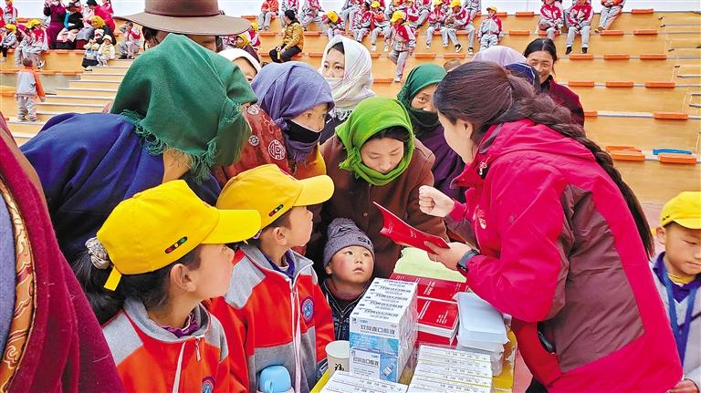 那曲市“掃黃打非”辦工作人員向農牧民群眾和學生講解“掃黃打非”相關知識。記者 曲珍 攝