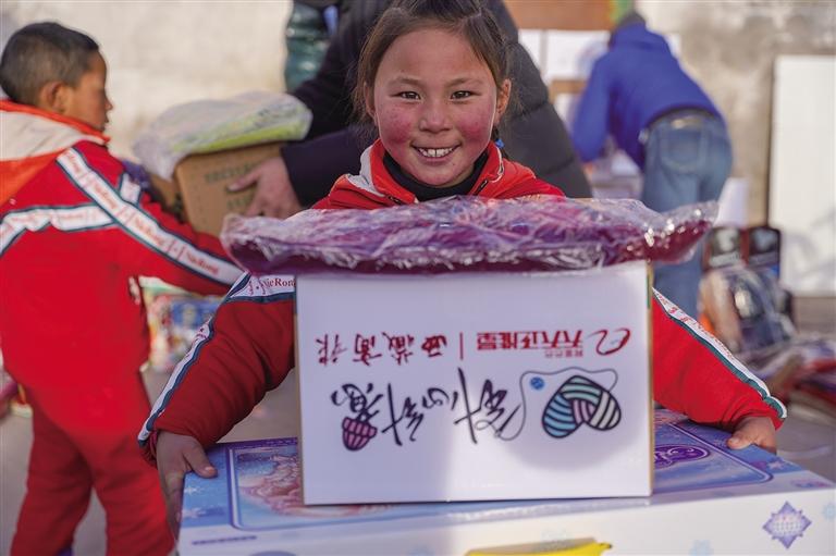 “扎西旺堆,過來領(lǐng)你的足球,還有去老師那邊拿盲盒和毛衣。”當木江鄉(xiāng)初小校長旦增頓珠將孩子們一個個叫過來。在一旁的王順利、申國強負責給孩子們發(fā)放心愿禮物,西藏商報記者、工作人員給孩子們遞上一個個“盲盒”。