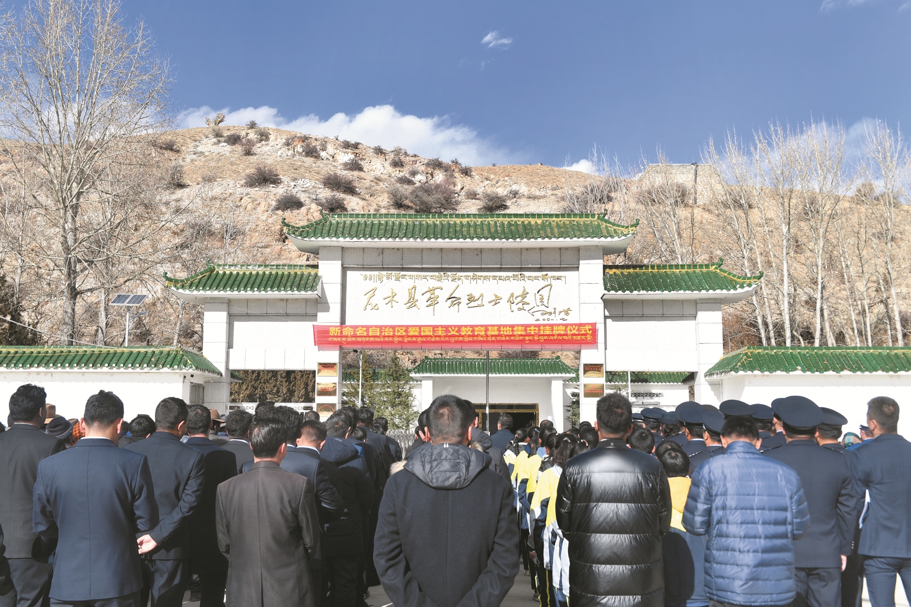 圖為在尼木縣革命烈士陵園舉行的自治區(qū)愛(ài)國(guó)主義教育基地掛牌儀式現(xiàn)場(chǎng)。 拉薩融媒記者 玉珠多杰攝