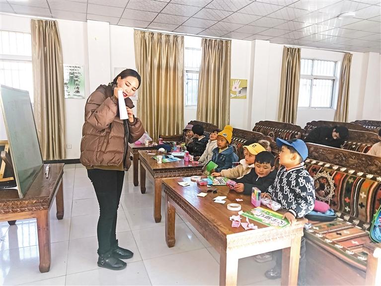 圖為駐村工作隊隊員在給村里的孩子們輔導功課。記者 張猛 攝