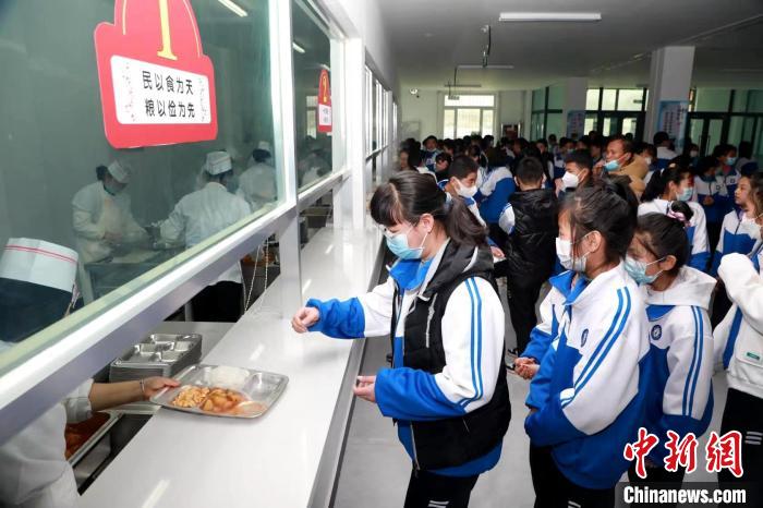 圖為海東市民和縣中學(xué)生在食堂打飯。(資料圖) 石延壽 攝