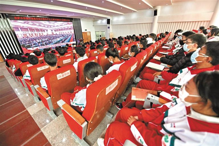 圖為拉薩中學的師生觀看慶祝中國共產(chǎn)主義青年團成立100周年大會直播。 記者 唐斌 攝
