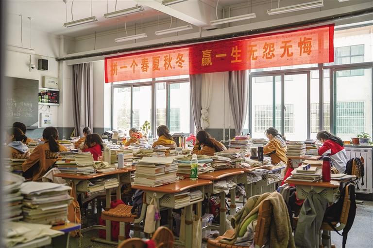 走進(jìn)高三年級(jí)教學(xué)樓,走廊里不時(shí)傳來(lái)朗朗讀書聲,每一個(gè)角落都充斥著同學(xué)們?yōu)榍啻汉蛪?mèng)想奮力拼搏的氣息。在高三(9)班的教室里,學(xué)生們正在全神貫注地聽(tīng)課,時(shí)而看課本、時(shí)而做筆記,神情認(rèn)真且專注。桌面上堆積的高高的書籍、練習(xí)冊(cè)和教室墻上掛著的高考倒計(jì)時(shí)牌都在時(shí)刻提醒著同學(xué)們,高考離他們?cè)絹?lái)越近了?!艾F(xiàn)在是高考復(fù)習(xí)的關(guān)鍵時(shí)期,同學(xué)們學(xué)得很認(rèn)真,班里的學(xué)習(xí)氛圍特別好,大家互相幫助、共同進(jìn)步。希望我們通過(guò)自己的努力,考上理想的大學(xué),實(shí)現(xiàn)自己的夢(mèng)想。”學(xué)生斯朗卓瑪告訴記者。