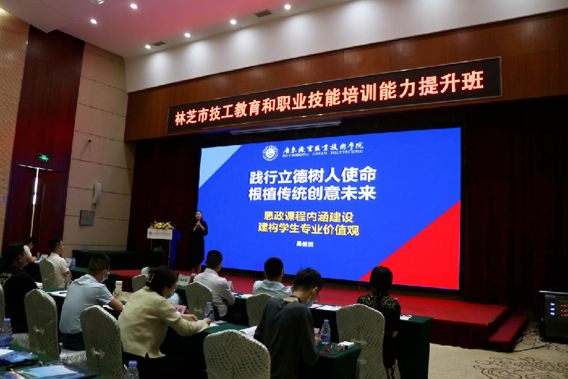 圖為廣東機(jī)電職業(yè)技術(shù)學(xué)院鄭偉光校長為林芝市技工教育和職業(yè)技能培訓(xùn)能力提升班學(xué)員授課。