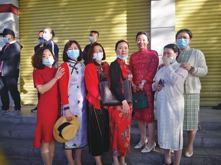 家長(zhǎng)們組團(tuán)穿旗袍為孩子加油助威。 文/圖 記者 張雪芳
