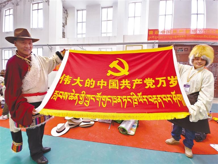 也有不少牧民,希望把藏北牧民愛黨愛國愛家鄉(xiāng)的熱情注入到傳統(tǒng)工藝當中。在比賽現(xiàn)場,記者看到很多牧民在傳統(tǒng)的氆氌和背包上刺繡、拼貼出黨徽、國旗、天安門等圖案,或繡出“偉大的中國共產(chǎn)黨萬歲”“鄉(xiāng)村振興那曲奮進”等字樣。