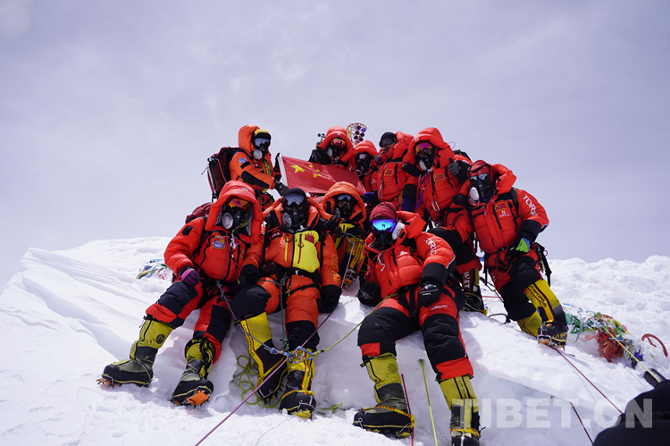 圖為2020年珠峰高程測量登山隊隊員在珠峰合影留念 攝影:西藏登山學校 扎西次仁