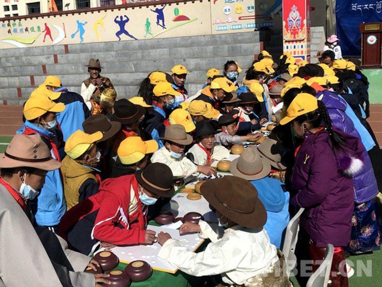 圖為2021年西藏自治區(qū)“體育項目進校園”活動暨拉薩市堆龍德慶區(qū)古榮鎮(zhèn)中心小學藏棋比賽活動現(xiàn)場 攝影:次旦拉姆