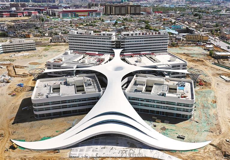 中央支持西藏自治區(qū)全面推進就業(yè)、教育、醫(yī)療、住房等重大民生工程項目建設(shè)。圖為正在建設(shè)的西藏自治區(qū)醫(yī)院。