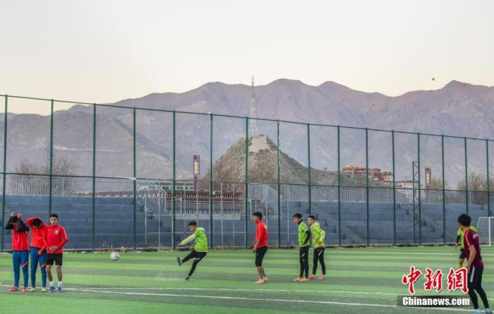 圖為12月12日,拉薩市城關區(qū)仙足島室外足球場里,市民正在踢球。 中新社記者 貢嘎來松 攝