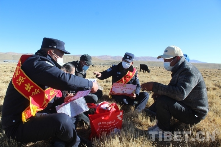 圖為崗巴邊境派出所民警深入牧場(chǎng)宣講黨的二十大精神