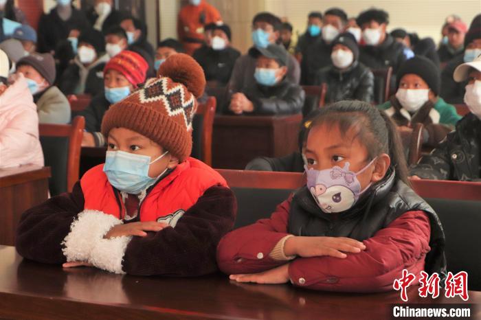 小朋友們認(rèn)真觀看防火宣傳視頻。 林芝市森林消防供圖