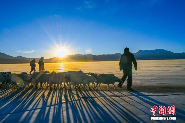 西藏普姆雍措冰湖羊群轉(zhuǎn)場 牧民環(huán)保意識提升