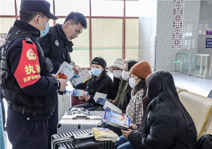 “日常生活中大家要提高防范意識,不要給陌生人攜帶、保管、買賣不明物品,以免被犯罪分子利用……”連日來,西藏自治區(qū)林芝市禁毒辦緊抓春運及節(jié)日人員流動高峰有利時機,市縣聯(lián)動,組織民警深入車站、商鋪、轄區(qū)施工單位等場所,開展“面對面”式禁毒宣傳教育。