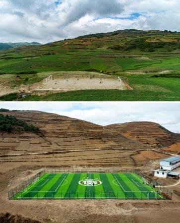 這是由中國足協(xié)、支付寶以及女足國腳們捐贈,于去年12月底新建成的全國第二座中國女足主題球場——“玫瑰夢想球場”。
