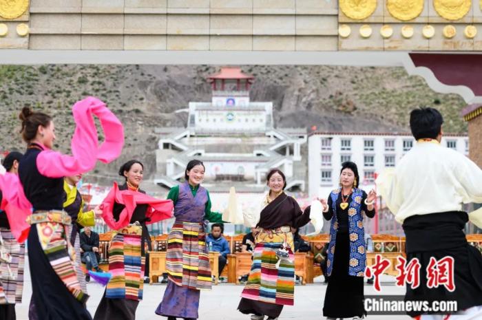 西藏洛隆縣易地搬遷安置點(diǎn)阿托卡小康示范新村,村民載歌載舞。何蓬磊 攝