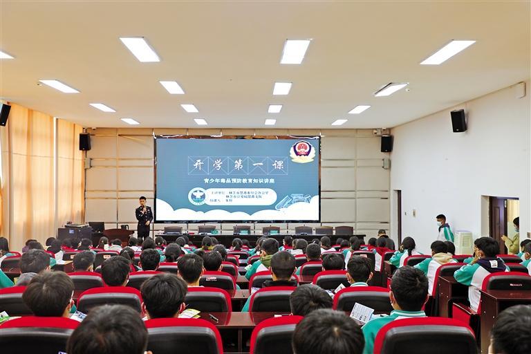 一堂“交通安全”課、一堂“禁毒知識”課、一堂“法治教育”課……活動中,民警們通過播放視頻、以案說法、現場演示等多種教學形式,用通俗易懂的語言,直觀生動的講解,熱烈輕松的互動,為同學們送上法律知識、交通安全、禁毒、反詐等“知識大禮包”。