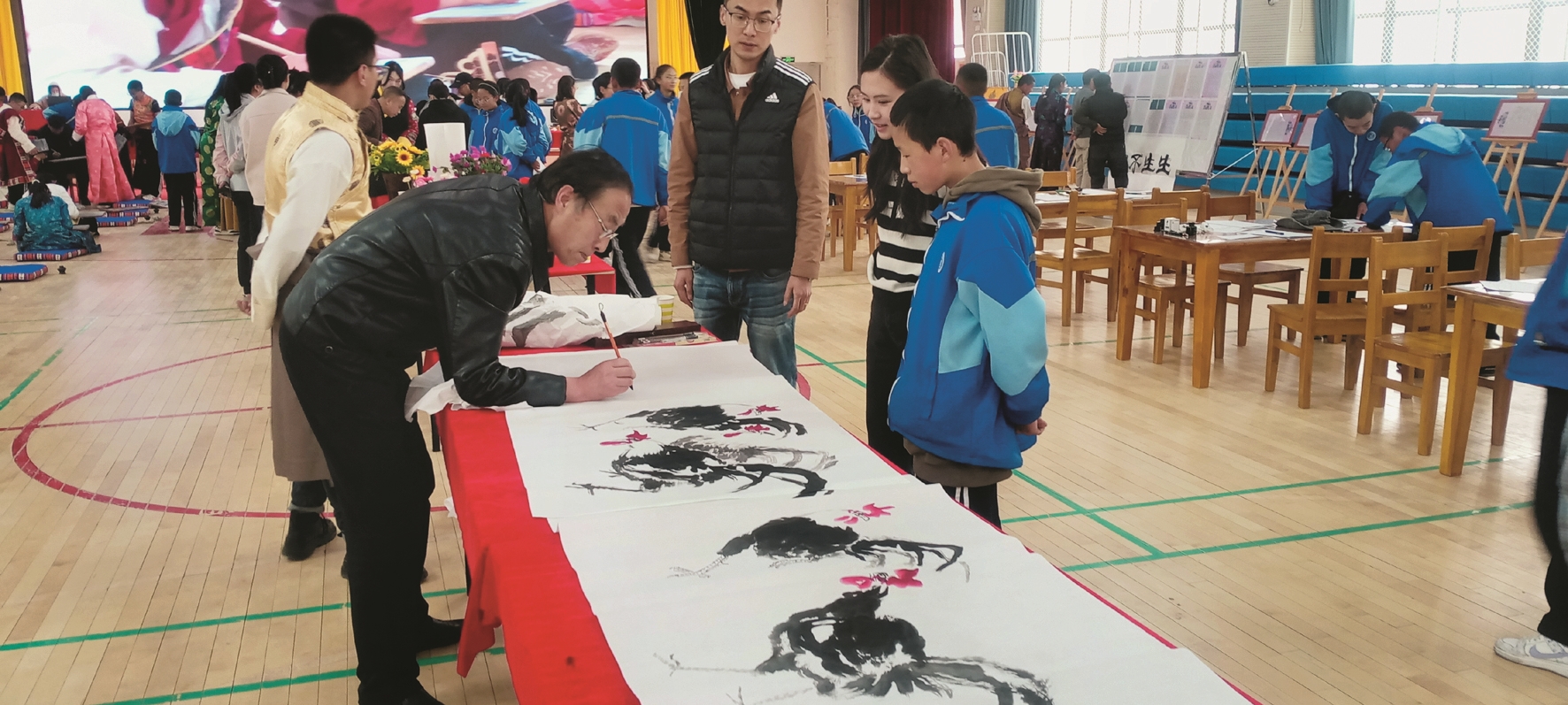 活動為拉薩市柳梧初級中學(xué)愛好書法的師生提供了一個展現(xiàn)自我價值的平臺,為充分展現(xiàn)中國書畫藝術(shù)魅力、繼承和弘揚傳統(tǒng)的國粹文化藝術(shù),藝術(shù)家們揮毫潑墨,現(xiàn)場演繹國畫和書法經(jīng)典,以提升廣大師生的藝術(shù)修養(yǎng)和審美情趣,激發(fā)大家研學(xué)書法的興趣和愛好。