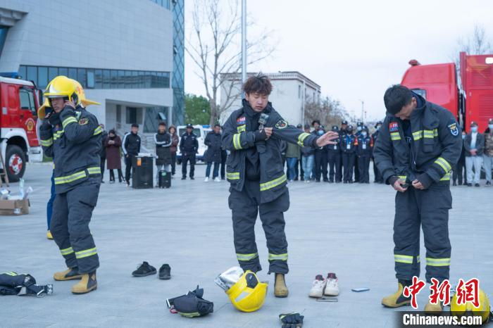 圖為消防員為學生講解消防器材?!∝暩聛硭?攝
