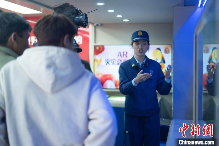 圖為學生體驗VR消防體驗室?!∝暩聛硭?攝