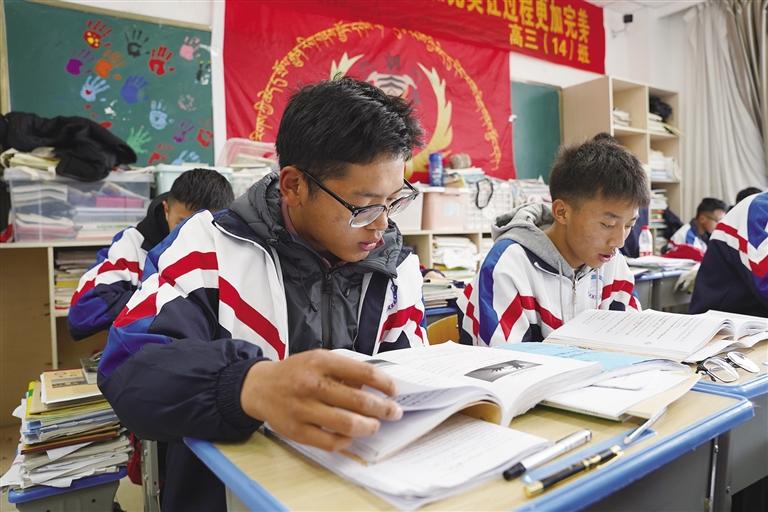 “叮鈴鈴”……隨著下課鈴聲響起,教室瞬間“熱鬧”了起來。有的同學(xué)走出教室活動久坐的身體、有的同學(xué)拿出習(xí)題冊和同桌小聲地討論、有的同學(xué)向老師請教不明白的知識點……清風(fēng)拂過,暖暖的陽光照在這些青春的身影上,演繹出一首屬于青春的奮斗頌歌?!艾F(xiàn)在是最緊要的關(guān)頭,必須把全部精力投入到學(xué)習(xí)中,爭取多掌握一些知識點?!备呷?2班學(xué)生索朗旦增說,“我的目標是西南政法大學(xué),希望通過自己的努力能實現(xiàn)這個夢想?!?/p>