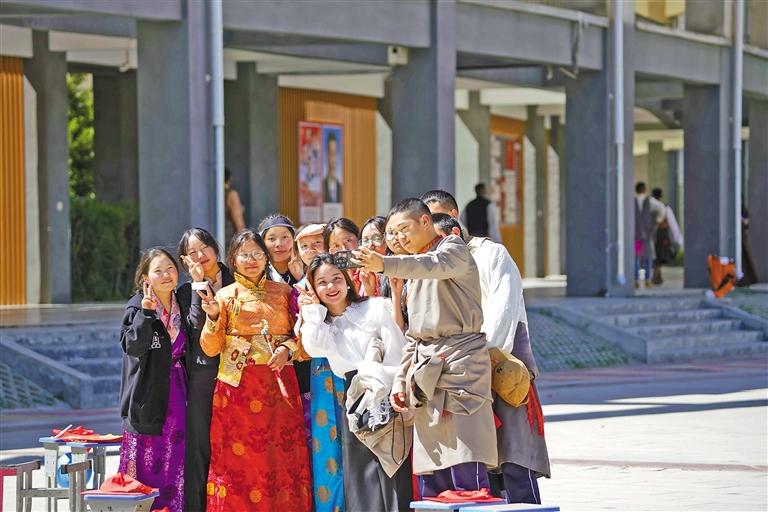 圖為學(xué)生們在一起自拍留念。 阿旺尼瑪 攝