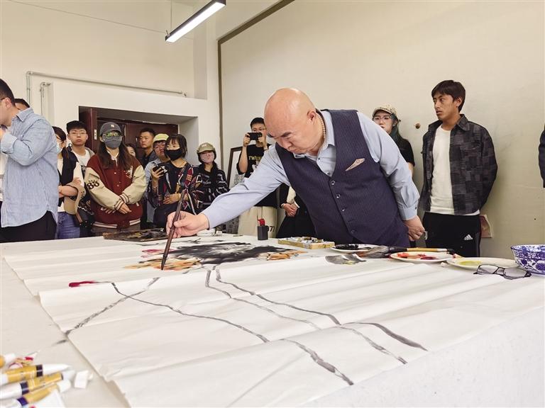 6月5日,由國家藝術(shù)基金支持,北京畫友藝術(shù)交流中心主辦的《意境》唐詩主題畫展在西藏大學(xué)藝術(shù)學(xué)院成功舉辦。此次主題畫展有賈平西、劉曦林、張松等20余位藝術(shù)家作品參展。中國藝術(shù)研究院文學(xué)藝術(shù)院專職畫家、國家一級(jí)美術(shù)師林維與南開大學(xué)藝術(shù)與美學(xué)研究院副院長(zhǎng)、博士生導(dǎo)師尹滄?,F(xiàn)場(chǎng)揮毫潑墨、即興發(fā)揮,給西藏大學(xué)獻(xiàn)上了兩幅圖。