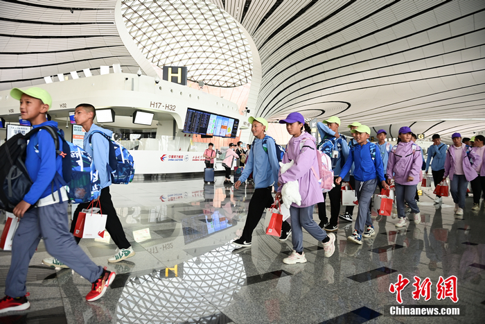 6月4日清晨,“青海玉樹藏族青少年北京行”活動(dòng)的40名藏族孩子踏上歸程。中新社記者 田雨昊 攝